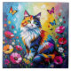Pretty Colorful Impasto Cat and Flowers Ceramic Tile