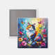 Pretty Colorful Impasto Cat and Flowers Magnet