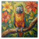 Pretty Colorful Impasto Parrot and Tropical Flower Ceramic Tile