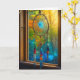 Pretty blue and red dreamcatcher hanging in a window. Serene art blank card.