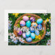 This unique postcard features various colourful Easter eggs in a basket. This item would make a wonderful greeting for friends, family and co-workers.