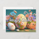 This unique postcard features an abstract Springtime collage with several flowers and decorative Easter eggs. This postcard would make a wonderful greeting for friends, family and co-workers.