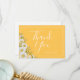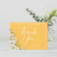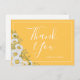 Pretty wedding thank you card design features watercolor white daisies corner on daffodil yellow background with white customisable text blocks in modern fonts