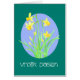 A very pretty Easter Card with the front cover greeting in Dutch Language with a clump of daffodils on a blue background with a green border and white lettering, from a watercolour painting by Judy Adamson. Please feel free to personalise the inside message.