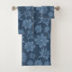 Pretty Dark Blue Floral Pattern Bath Towel Set