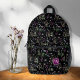 This pretty girl's backpack features a black background with small flowers in white, green, blue, violet. The text field below allows you to easily text your intial or the recipient of your gift. If you would like to alter the design's colour or font, or even take the personal tag off, send me a message on Zazzle. Feel free to contact me; I will respond and address your request normally within 1 day. Enjoy shopping!