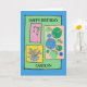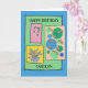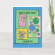 This HAPPY BIRTHDAY art greeting card is decorated with three pretty doodles of plants, each inside their own border. You can personalise the card with your own name and greeting. The main colours of the design are green and blue, and the inside is blank. The artwork is original mixed media drawings, and only available from The Art of Being Beth.