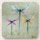 Pretty original watercolor illustration of cute dragonflies in different colours against a rustic background.