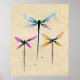 Pretty original watercolor illustration of cute dragonflies in different colours against a rustic background.