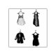 Rubber stamp features a row of original illustrations of pretty dresses on hangers.