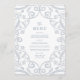 Flat 5x7" wedding menu that feels royal, romantic and elegant with a pop of soft silver glitter, floral lace frame design with leaves, and dusty blue. Perfect for Winter seasons, as well as all year round.