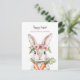 Pretty Easter bunny with carrots postcard. Wonderful spring colours in pastel pink, orange and brownish colours, watercolor floral design, and a super cute pretty bunny holding two orange carrots. Personalised text with a lovely trendy script.