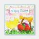 Pretty chick with colourful eggs basket wishing Happy Easter. Personalise text as well you prefer.