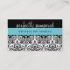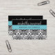 PRETTY ELEGANT DAMASK pattern black bright blue Business Card