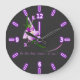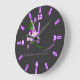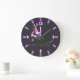 Pretty Elegant Purple Flower-Black Background Large Clock