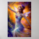 Pretty fairy dancing with a beautiful white dress and purple flowers and illuminated wings.