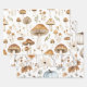 PRETTY FALL BROWN MUSHROOMS AND FLOWERS WRAPPING PAPER SHEET
