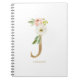 Pretty Faux Gold Foil Floral Letter J Monogram Notebook