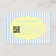 Pastel trendy blue yellow bow stripe pattern business card designed for pretty, girly, feminine brands. Perfect for handmade baby clothing boutiques, makeup artists, and small business owners. Features stylish QR code integration with a soft vintage-inspired aesthetic for modern, eye-catching branding.
