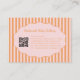 Trendy vintage-inspired orange pink bow stripe pattern business card designed for pretty, girly, feminine brands. Perfect for handmade baby clothing boutiques, makeup artists, and small business owners. Features modern QR code placement for stylish, professional networking and branding.