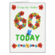 A pretty, floral 60th Birthday Card for a Stepmother. The numbers are composed of flowers and a blue butterfly is perched on the letters. This design is from a handpainted paper collage by Judy Adamson and is also available as a Custom Front card. You can edit the inside text if you wish.