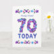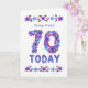 A pretty, floral 70th Birthday Card for a Friend. The numbers are composed of pink, blue and purple flowers. This design is from a handpainted paper collage by Judy Adamson and you can edit the inside text if you wish.