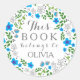 Customise this Custom Fresh Pretty This Book Belongs To Round Stickers featuring an Original Elegant Blue and Grey Flowers with Green Leaves. Girly cute design. You add your name, the "book" text can be changed to and replaced by some other product on which you wish to stick this name sticker on.