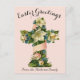 A pretty reproduction of a floral cross vintage Easter card, it has been edited to clean the image up, and it has a reproduction of a vintage postcard on the back so that you can write a message. Send it in the mail or give it with an Easter gift. This is a pretty choice for a religious greeting. Customise the message on the front of the card using the editing tool in the listing to personalise the family name.