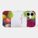 Beautiful and colourful roses highlight this personalised text box framed iPhone 17 case.