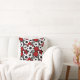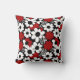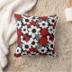Red, black and white flowers whimsical tiled pattern pillow.