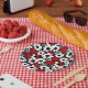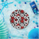 Red, black and white flowers whimsical tiled pattern birthday paper plates.