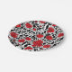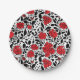 Pretty Floral Pattern in Red, Black and White Paper Plate