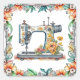 Pretty Floral Vintage Sewing Machine and Flowers Square Sticker