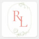 Chic and elegant. This template features a monogram with couple initials in coral pink in lovely soft green floral frame. This sticker adds just that special something to to wedding favour packaging and envelopes.
