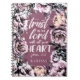 This beautiful, elegant notebook journal features a stylish vintage floral frame, along with a Bible verse, reading, "Trust in the Lord with all your heart." Easy to personalise for a special gift!