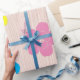 Pretty Flower Cutouts on Woodgrain Backdrop Wrapping Paper