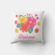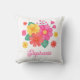 Customise this pretty pillow with your name. It features an original modern floral design with pink, orange and yellow flowers.