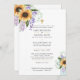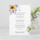 Pretty watercolor flowers, yellow Sunflowers, purple and pink floral theme ideal for spring and summer wedding. Also included pretty sage and emerald green greenery and leaves, mason jar, a gold cross, classic elegant design with parents names and customisable scripture. Design by LeahG,