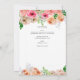 Pretty watercolor flowers, purple, pink and peach colours ideal for a spring, summer, fall or winter wedding. Also included pretty sage and olive green greenery and leaves, mason jar, a gold cross, classic elegant design with parents names and customisable scripture. Design by LeahG,