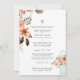 Pretty watercolor flowers, terracotta and peach ideal for a fall or winter wedding. Also included pretty sage and olive green greenery and leaves, mason jar, a gold cross, classic elegant design with parents names and customisable scripture. Design by LeahG,