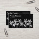 A modern business card with an attractive, original hand drawn pen and ink style flowers motif. Suitable for a variety of businesses. Ready to be customised. The company details are on the front with name and contact details on the reverse side, along with a variation of the front motif. Background colours are also customisable.
