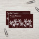 A modern business card with an attractive, original hand drawn pen and ink style flowers motif. Suitable for a variety of businesses. Ready to be customised. The company details are on the front with name and contact details on the reverse side, along with a variation of the front motif. Background colours are also customisable.