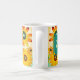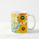 Yellow and turquoise whimsical folk art flowers coffee cup. Add initials in the personalised area.