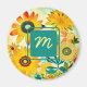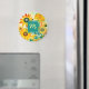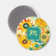Yellow and turquoise whimsical folk art flowers magnet. Add initials in the personalised area.
