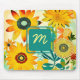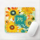 Yellow and turquoise whimsical folk art flowers mousesepad. Add initials in the personalised area.
