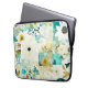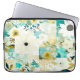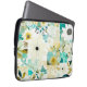 Pretty Folk Art White and Turquoise Flowers Laptop Sleeve