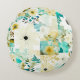 Pretty Folk Art White and Turquoise Flowers Round Cushion