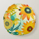 Pretty Folk Art Yellow Flowers Round Cushion
