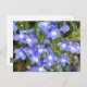 My original artwork is featured on this lovely floral postcard, consisting of my original photograph of a garden with blue Forget Me Not flowers, processed into an illustrated, watercolor style with a touch of whimsy. These postcards are printed on nice Italian paper and are qualified by the US Postal Service to use with or without an envelope (which is included with this postcard). They have a semi-gloss finish to protect in the mail process. Send flowers economically with this card!