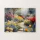 Pretty Garden with red yellow roses blue flowers Jigsaw Puzzle